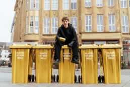 To illustrate this, we turned plastic into gold, and the yellow garbage cans intended for this purpose into golden garbage cans. The centerpiece of the campaign was a hero video featuring TikTok creator Levi Penell, who swaps yellow garbage cans for gold overnight.